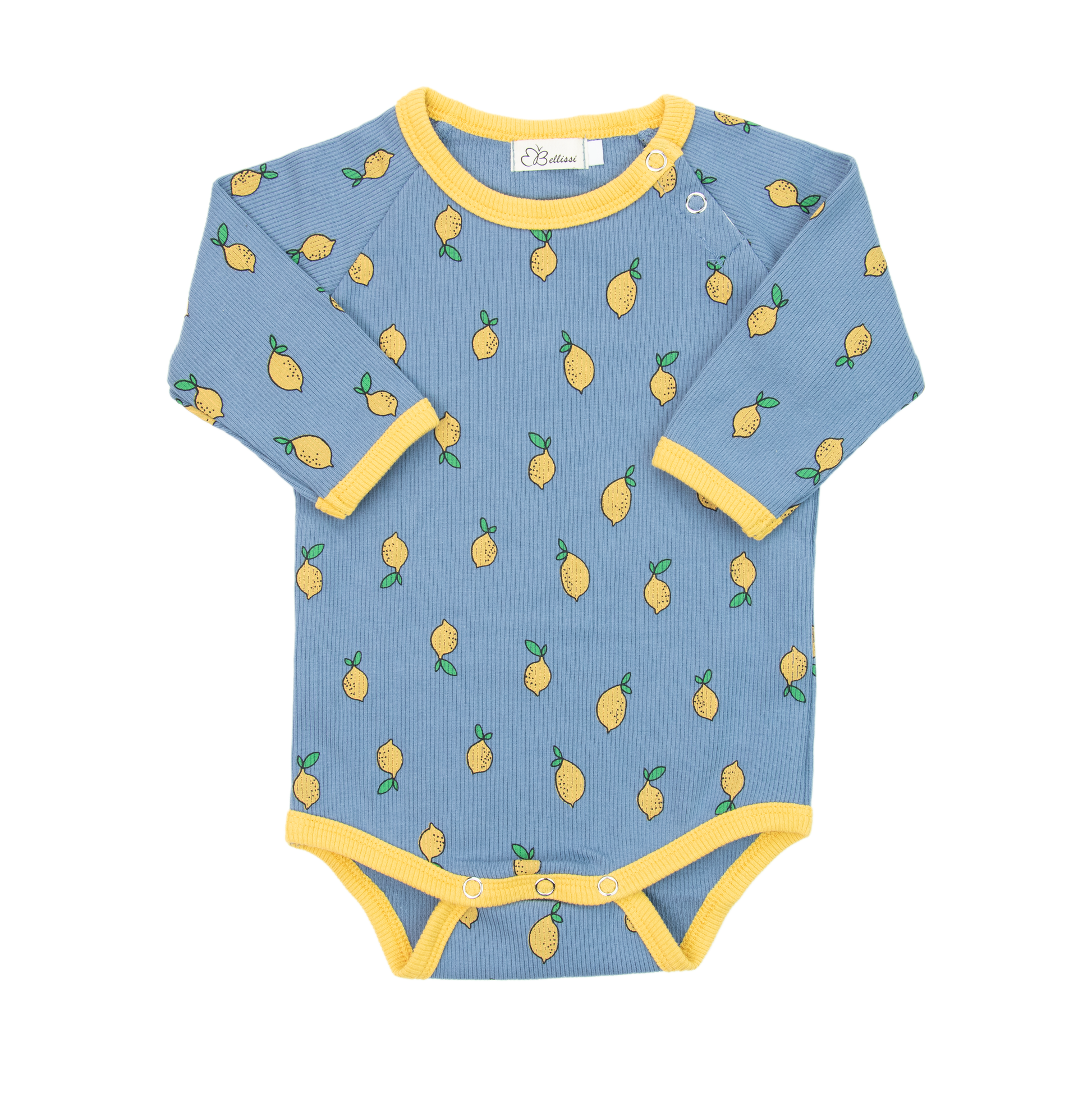 Body med trykk i ribbet bomull med knapper på skulder. 95% bomull og 5% elastan.