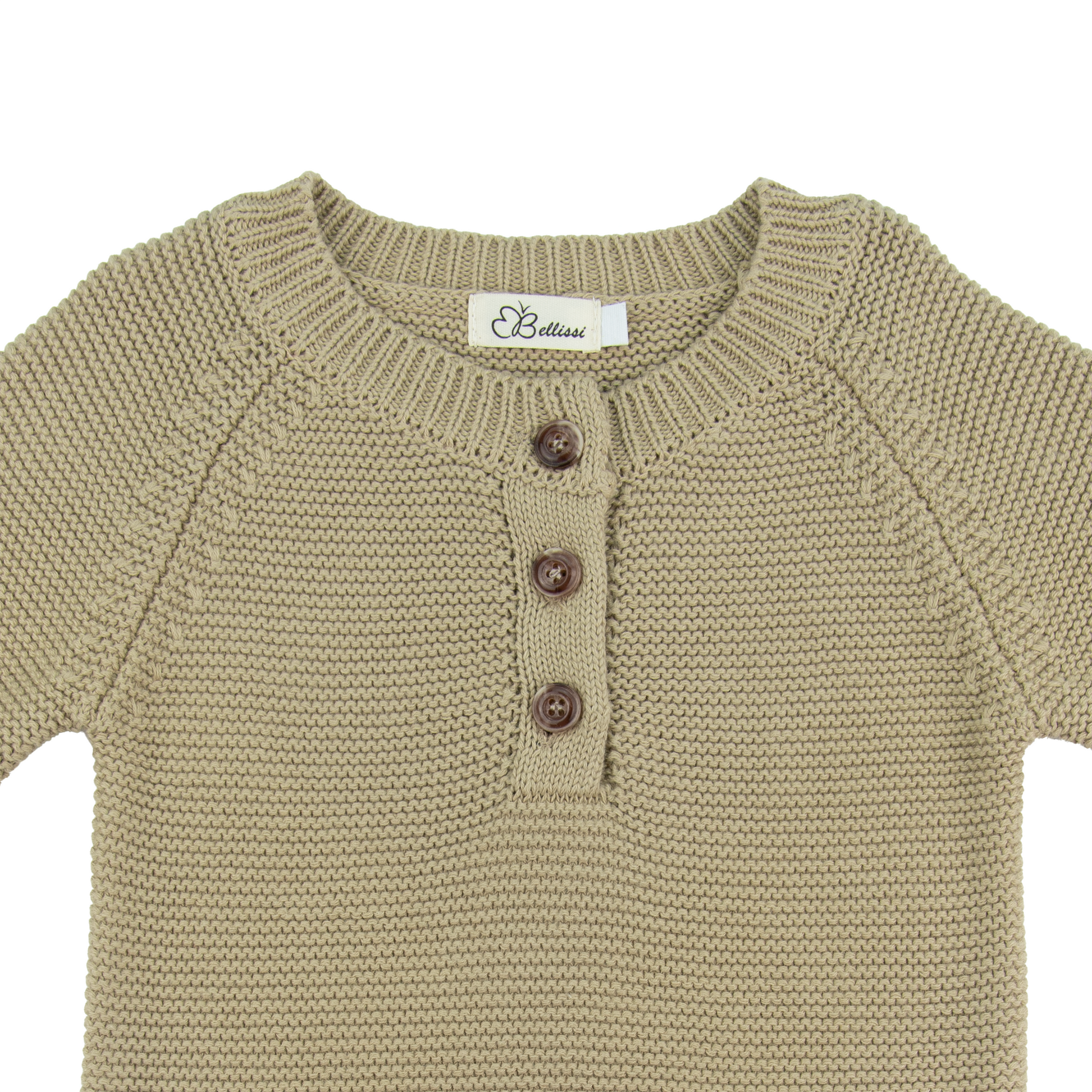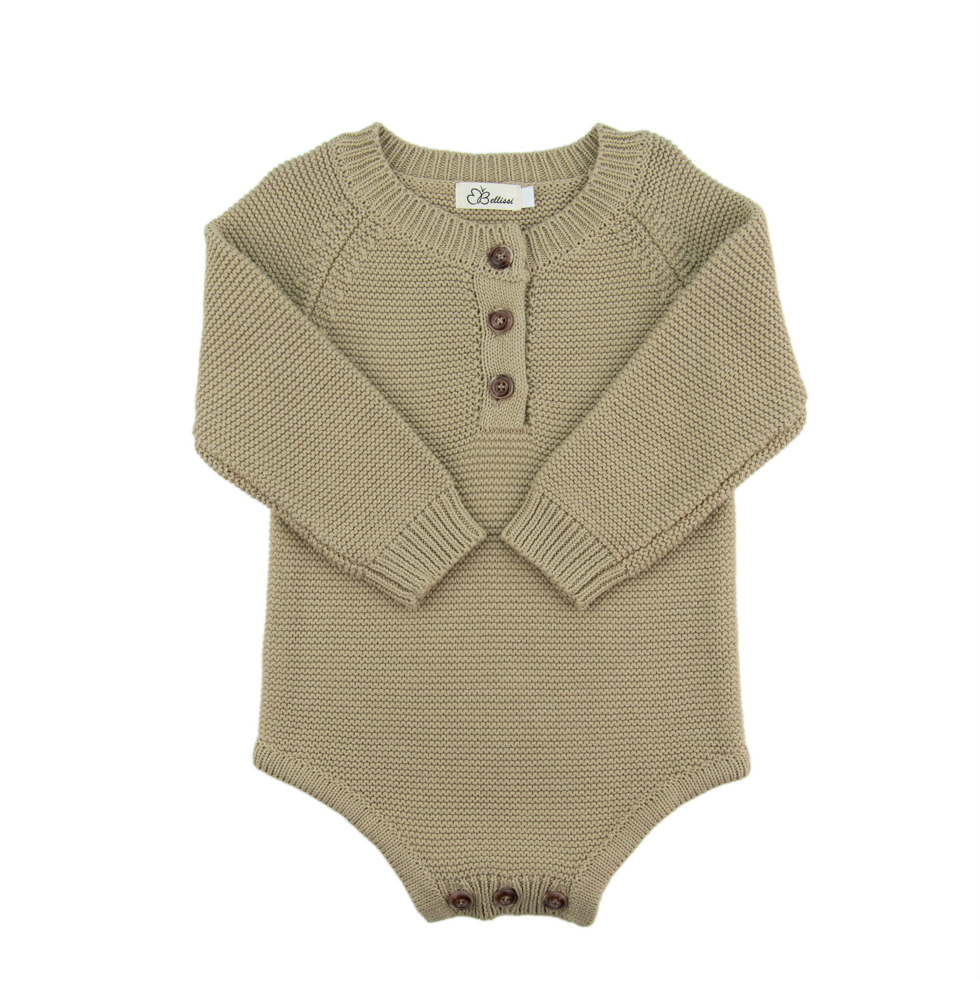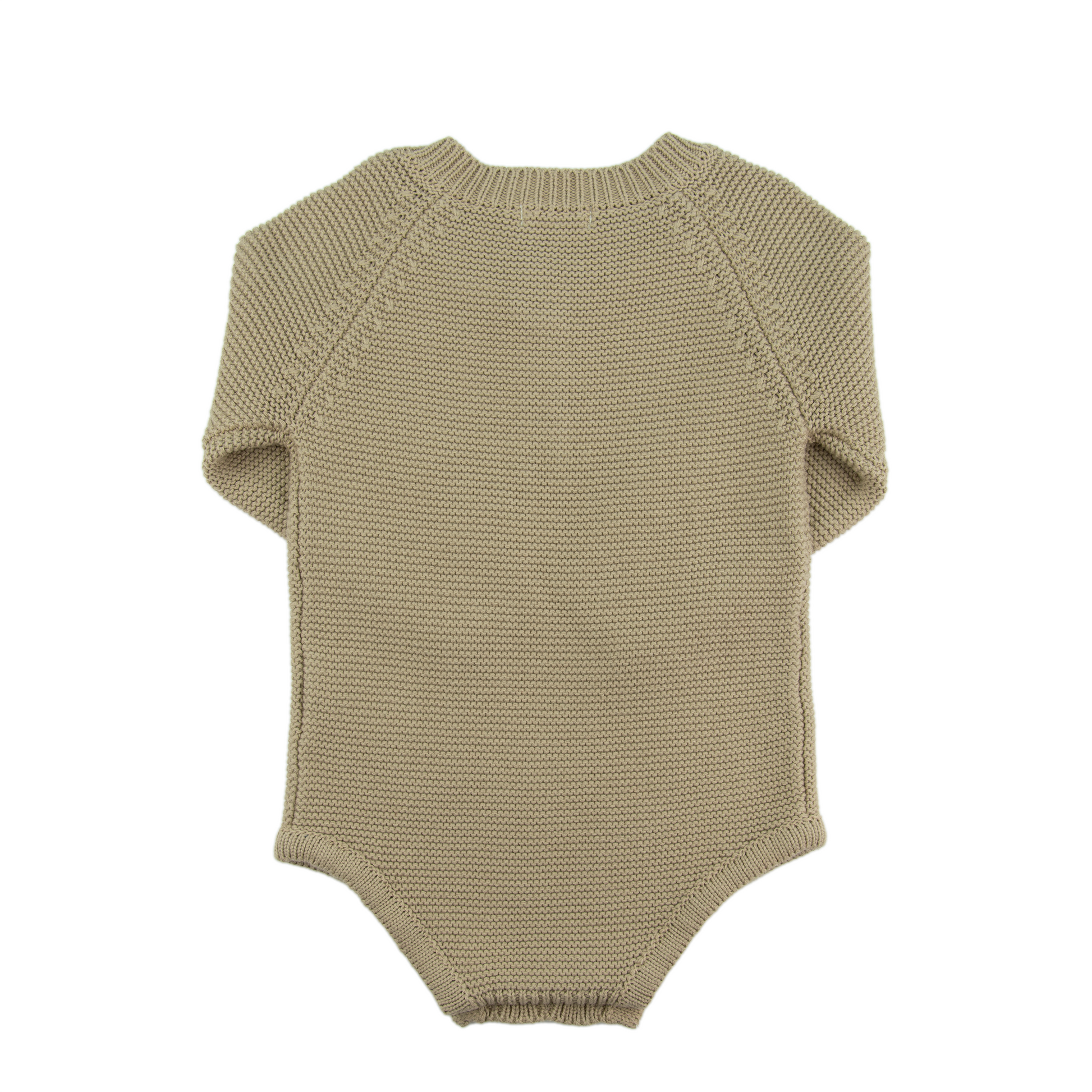 Myk og tykk strikket body som er strikket i et behagelig bomullsgarn. Den åpnes med knapper foran på brystet og mellom beina. Styles ofte med strømpebukser under bodyen. Laget av 100% bomull.