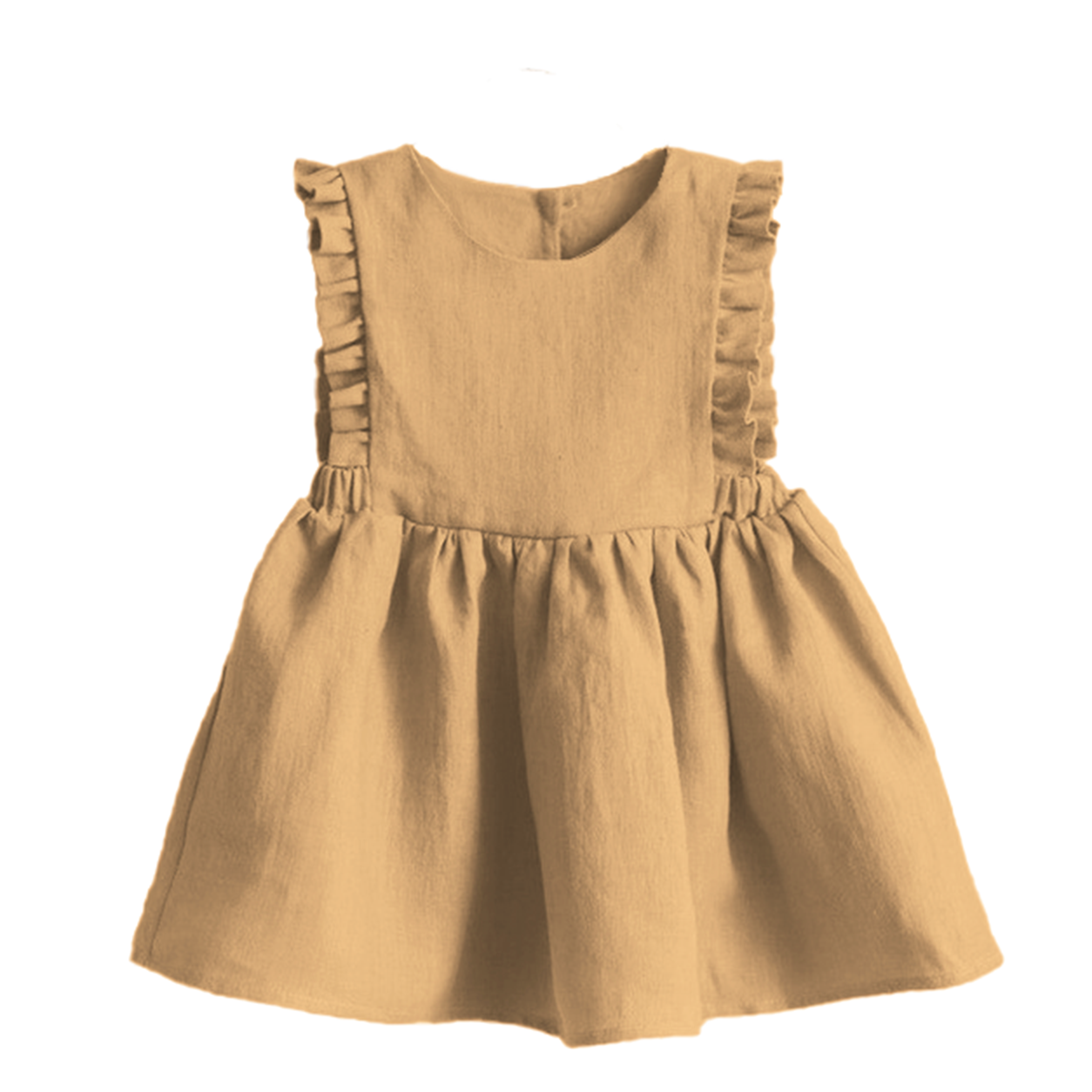 En enkel og vakker linkjole med fine detaljer. Kjolen har volager rundt ermeåpningen og strikk i livet på sidene. Kjolen åpnes og lukkes med knapper i ryggen. Laget av 70% bomull og 30% lin.