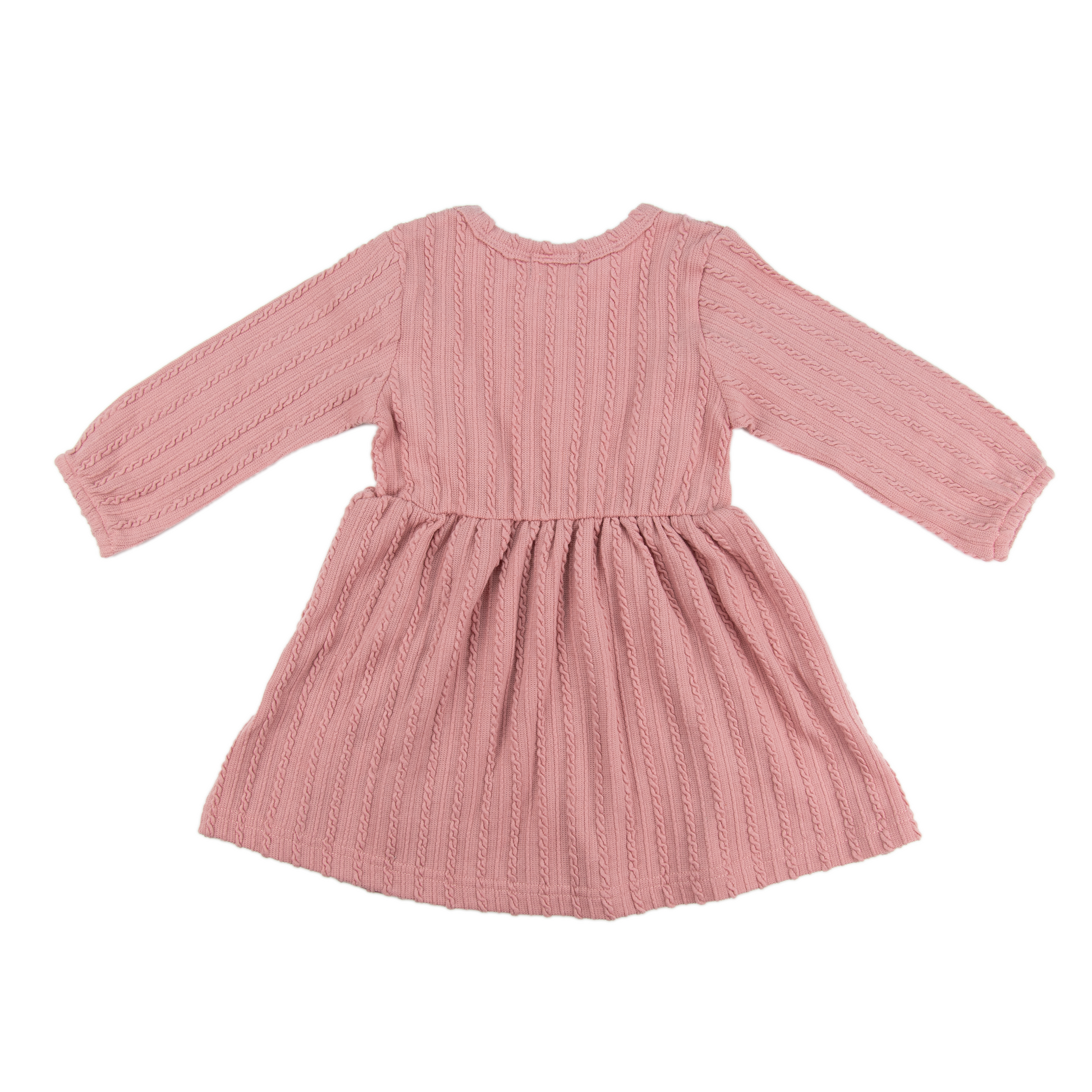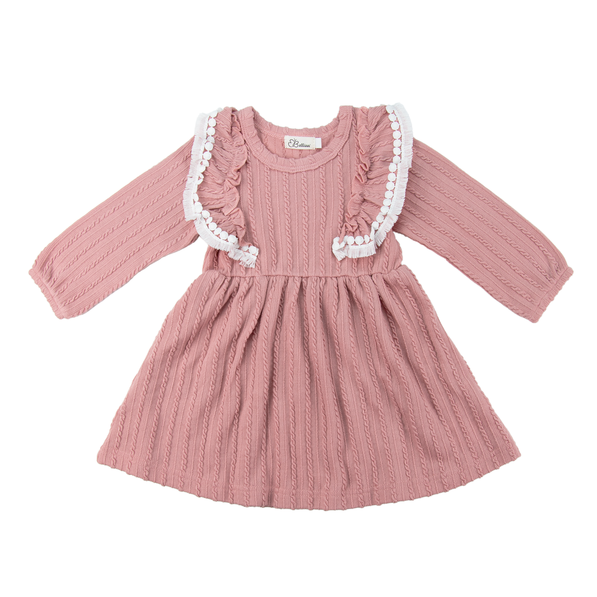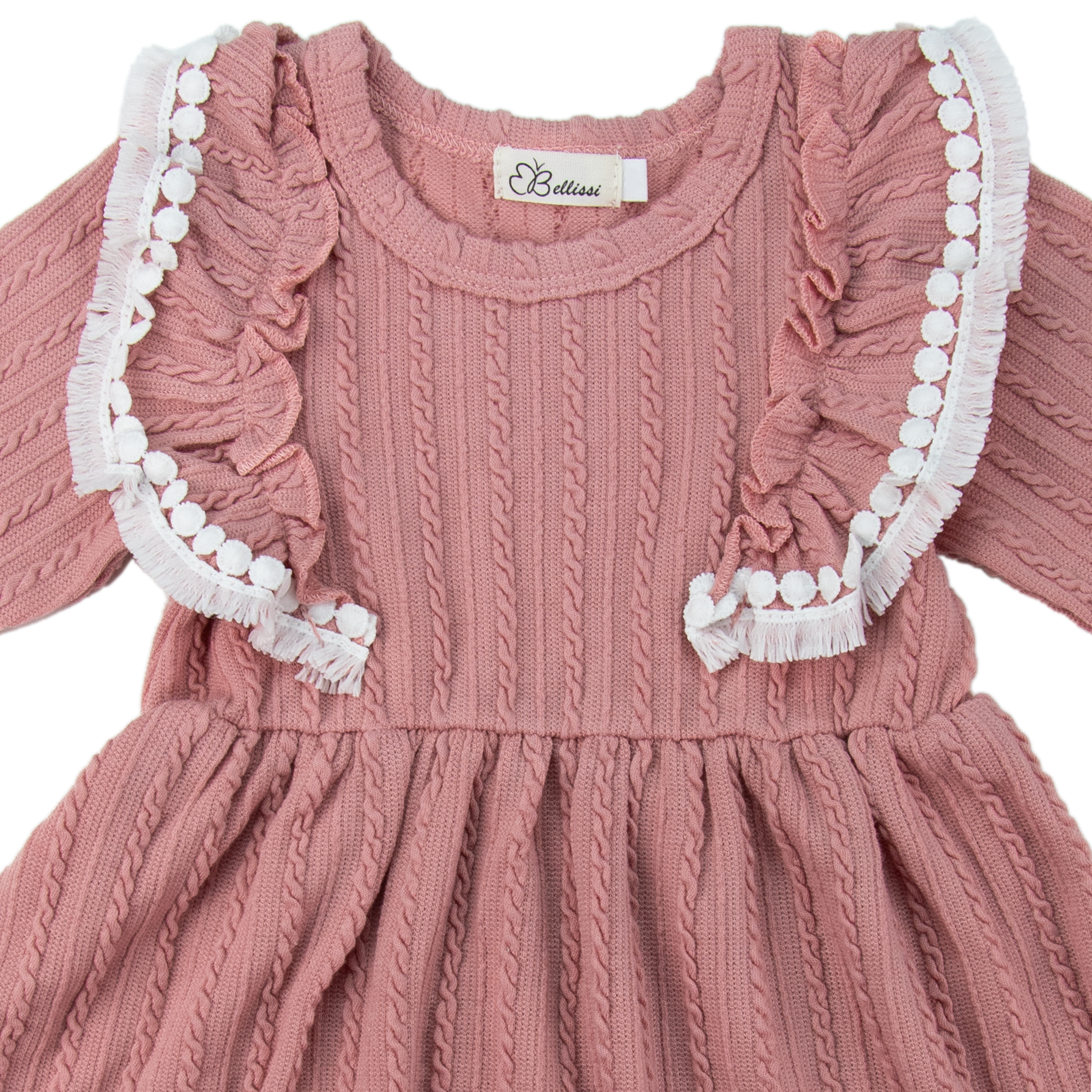Søt og lett kjole med strikket mønster og volanger på brystet.