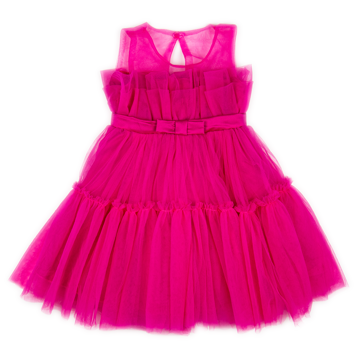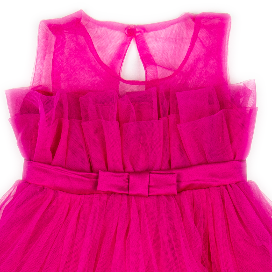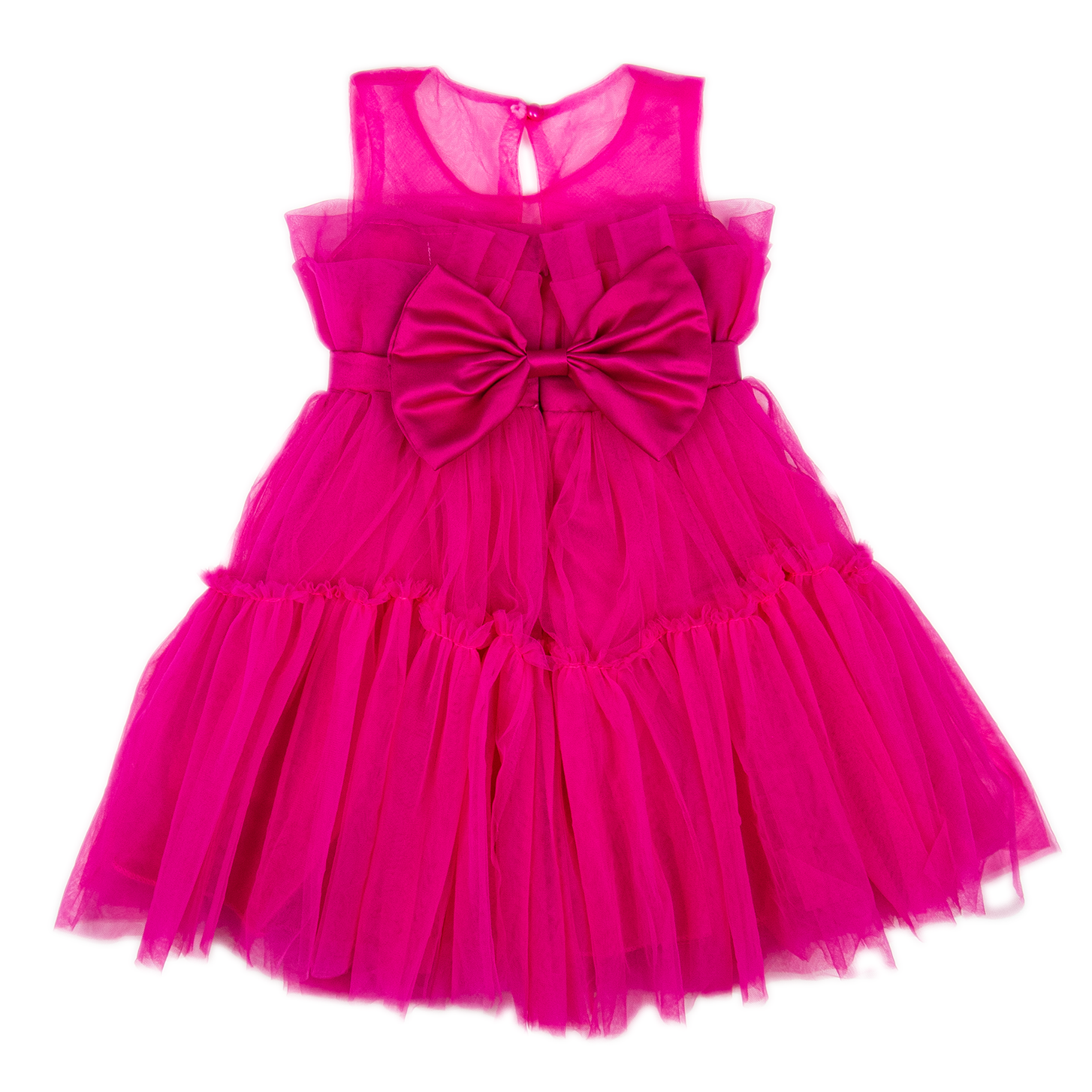 Tyllkjole med mange lag tyll og sløyfe på brystet og sløyfe i ryggen i sateng. Laget av 100% polyester.